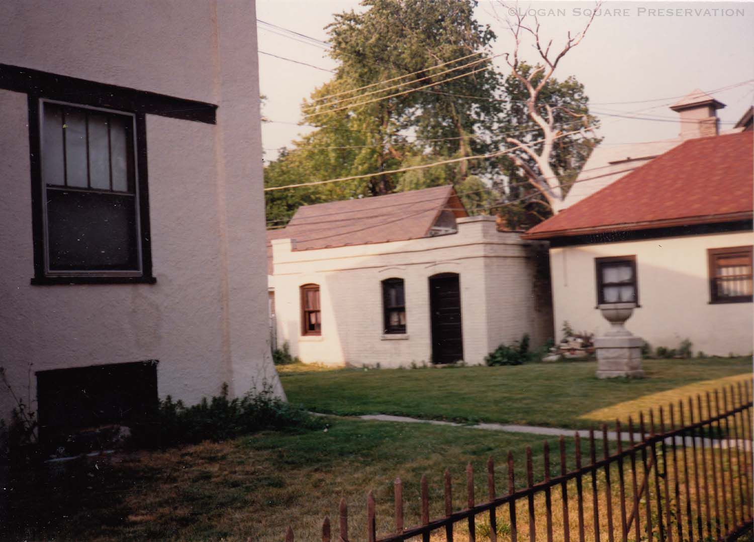 Snapshot photo of backyard and brick garages at 3230 W. Belden and 2307 N. Sawyer, mid to late 1980sPhotograph Details