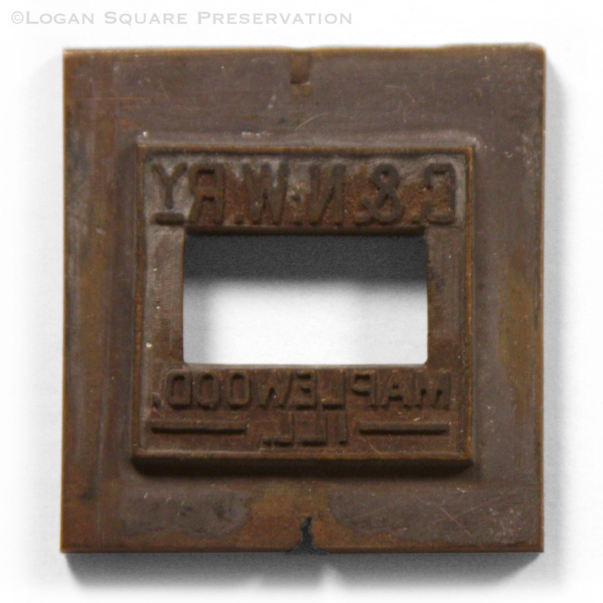 2" square metal embossing die with open center, for Chicago & Northwestern Railway station at MaplewoodRelationships