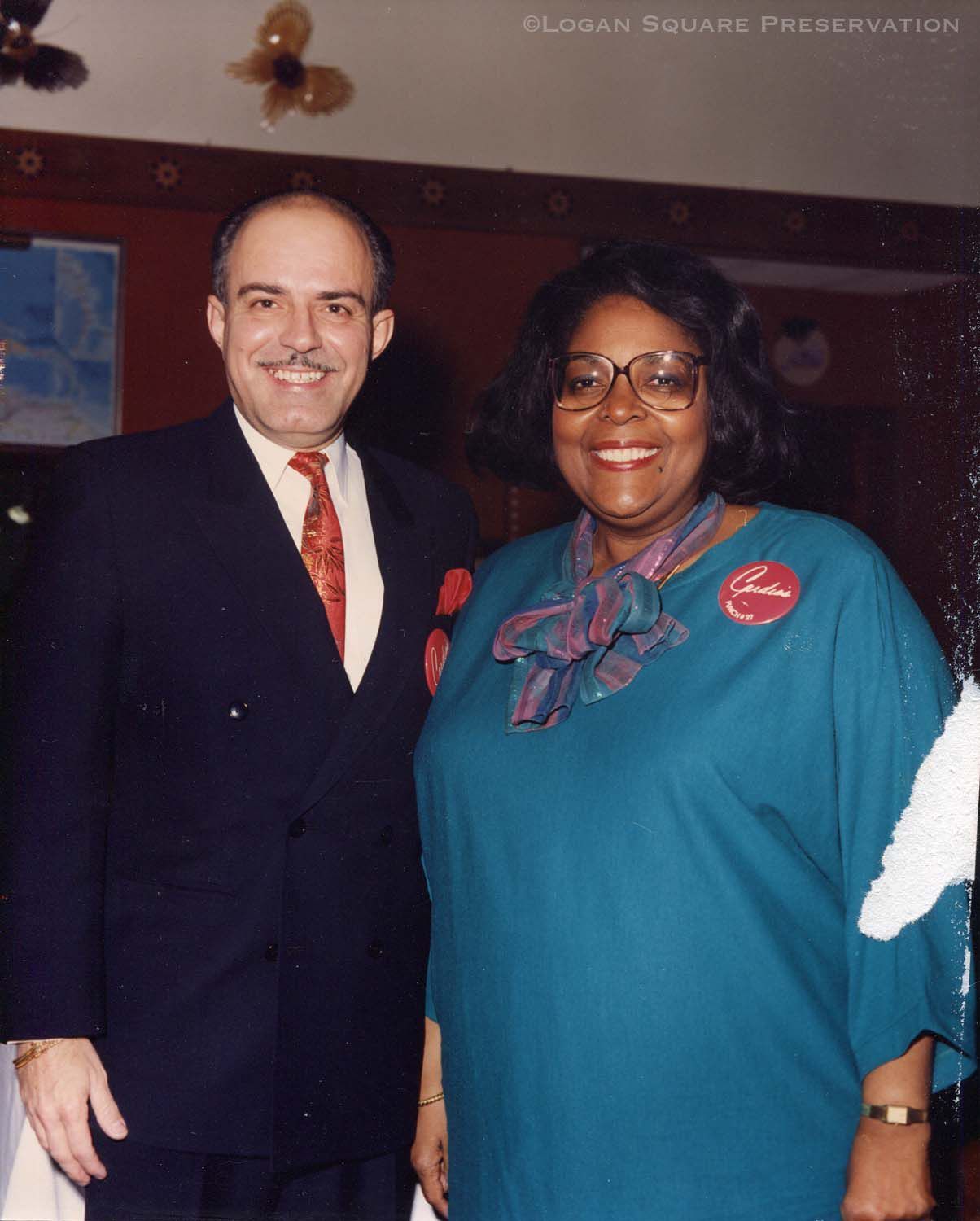 Portrait of U.S. Congresswoman Cardiss Collins with Tania's Restaurant owner Elias Sanchez, circa 1994Photograph Details