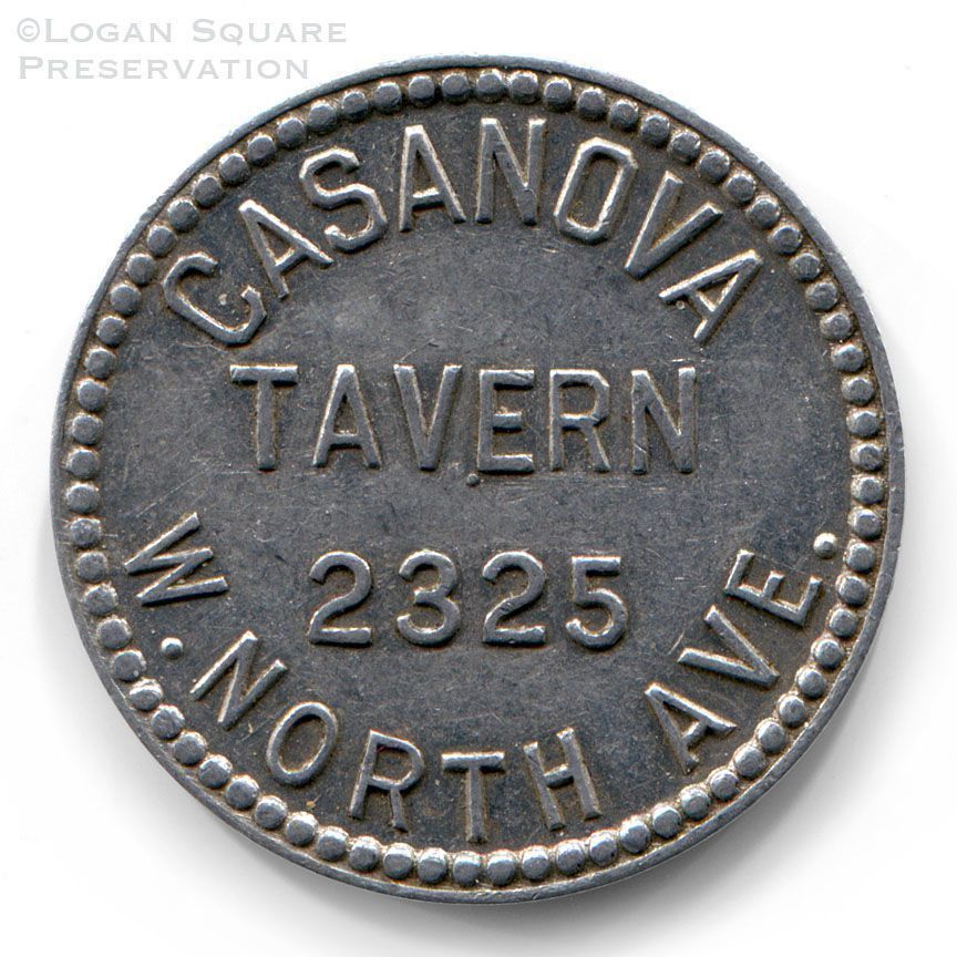 Metal tavern token good for 25¢ credit at Casanova Tavern, circa 1940s-1950sCollection