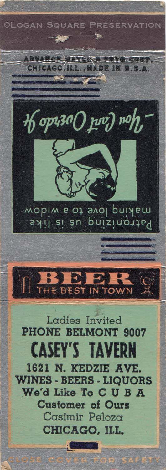 1.5" matchbook cover printed in silver, green and pink ink with stock illustrations of couple kissing on back and reclining woman on inside, circa early 1940sPublication Details