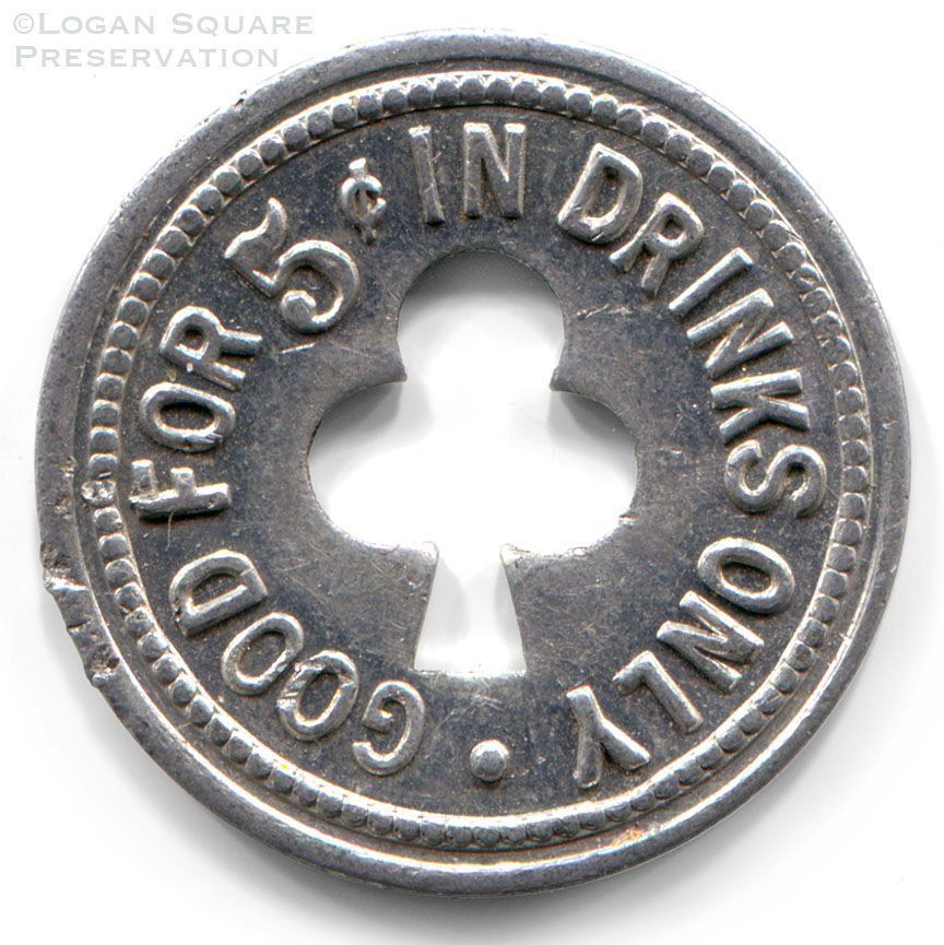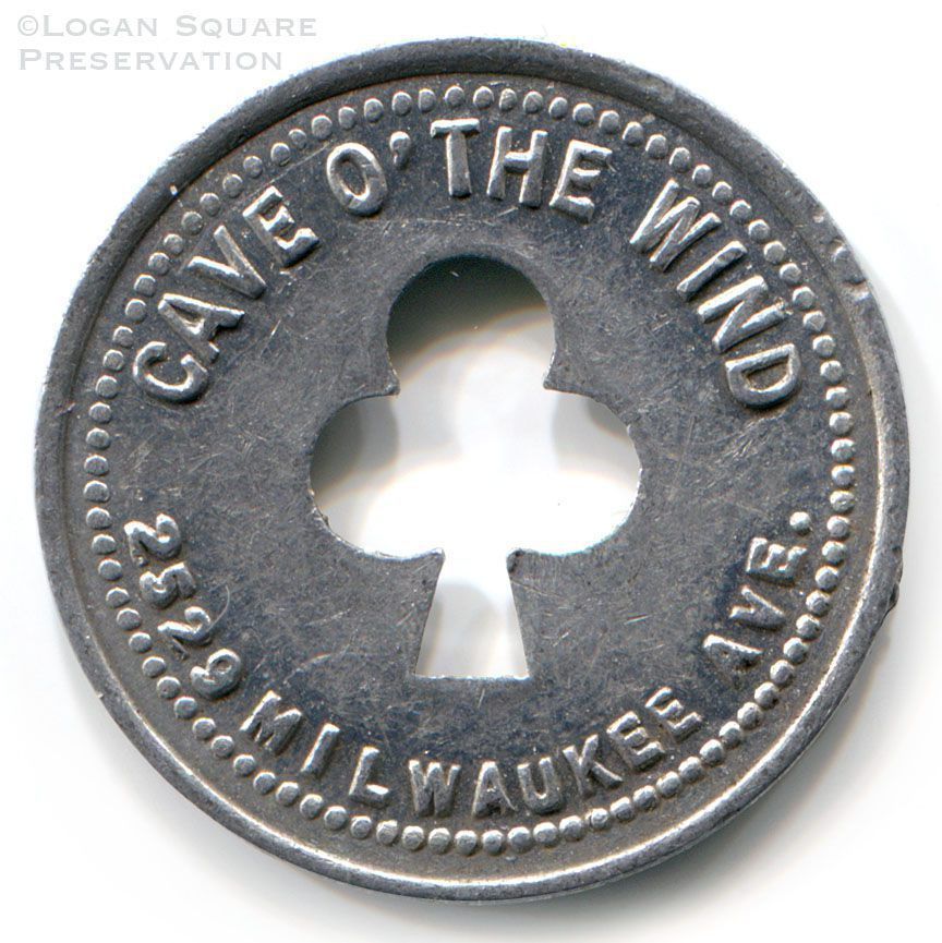 Metal tavern token with shamrock cutout good for 5¢ credit at Cave O' The Wind tavern, circa 1930s-1940sCollection