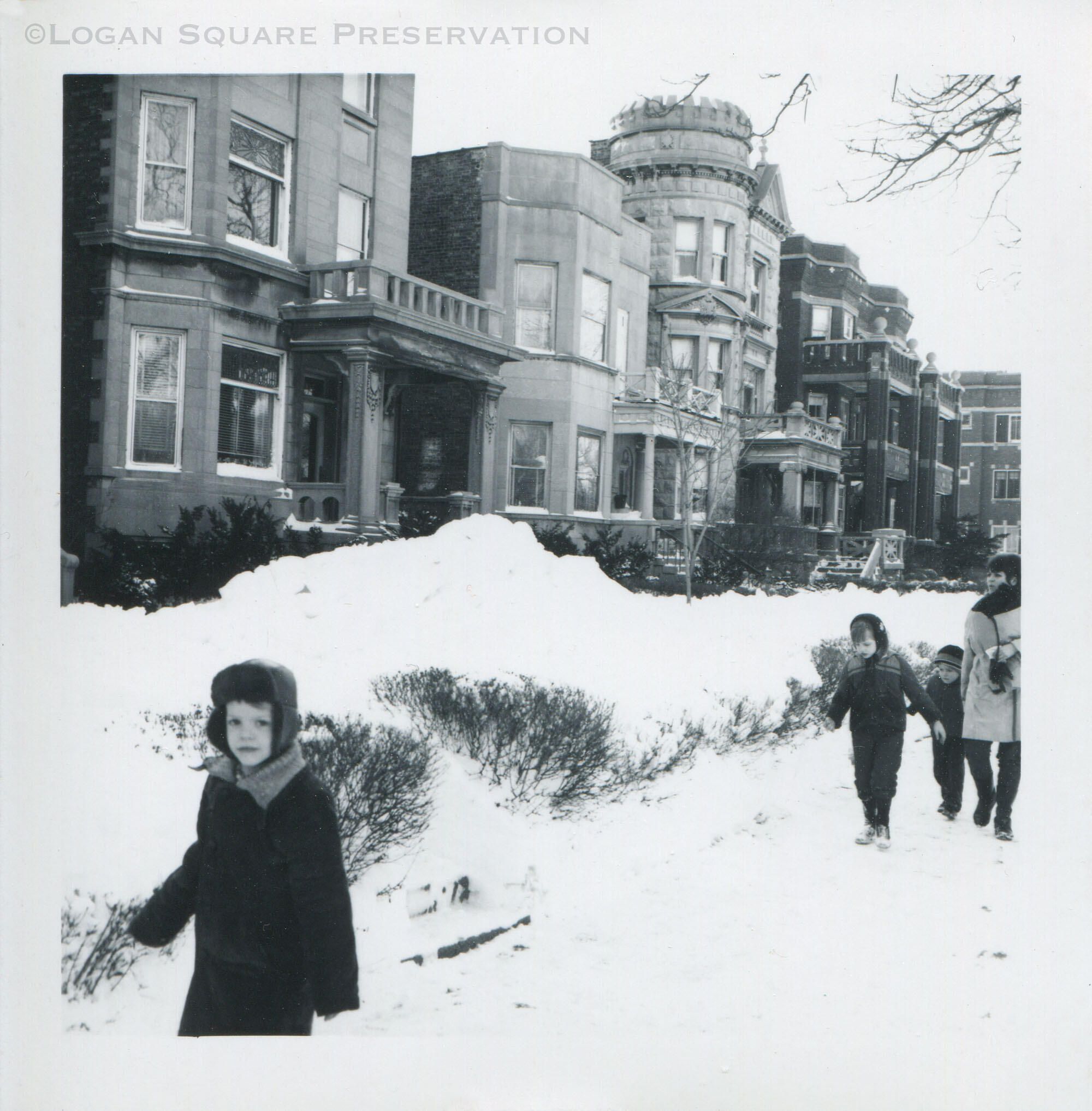 Gerald Slawin photo of children walking on snowy sidewalk of 2800 block of Logan Boulevard, after January 1967 blizzardPhotograph Details