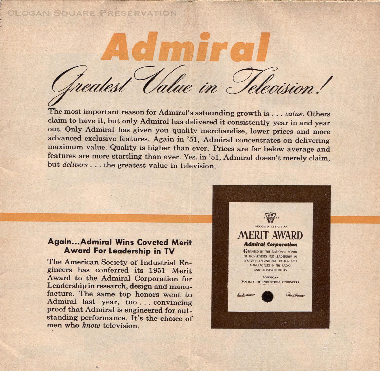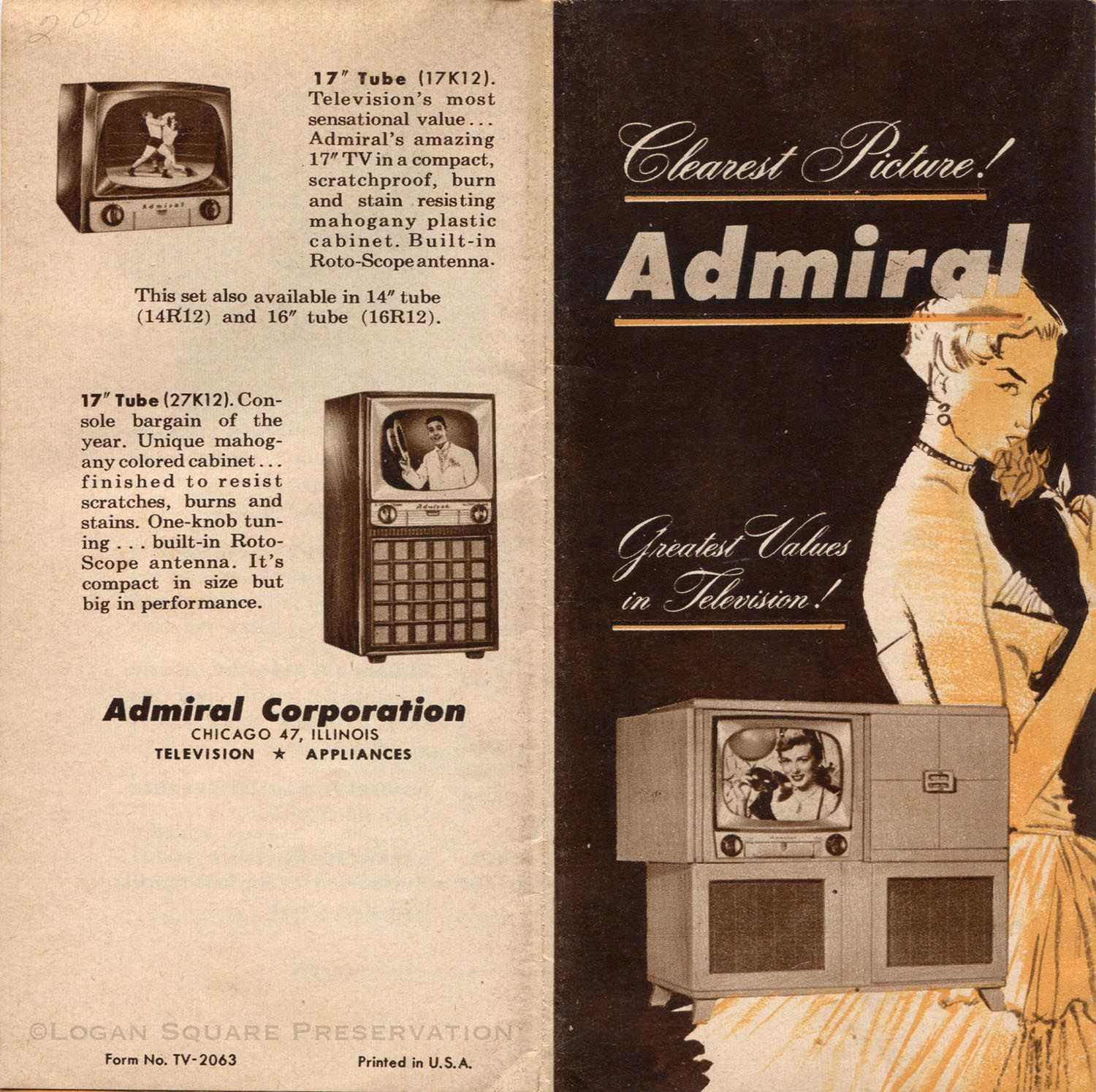 Clearest Picture! Admiral: Greatest Values in Television! brochureEntry/Object ID