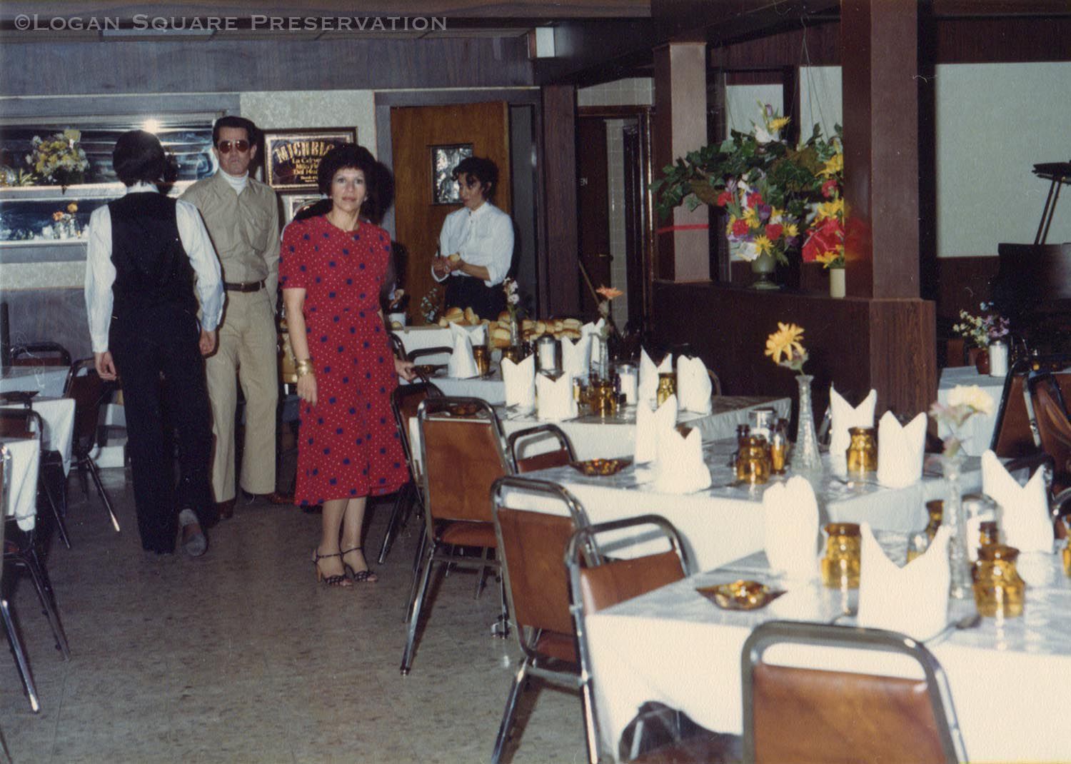 Snapshot photo of Tania's Restaurant owner Marta Sanchez standing next to tables at back of newly-opened dining room, circa early 1980sPhotograph Details