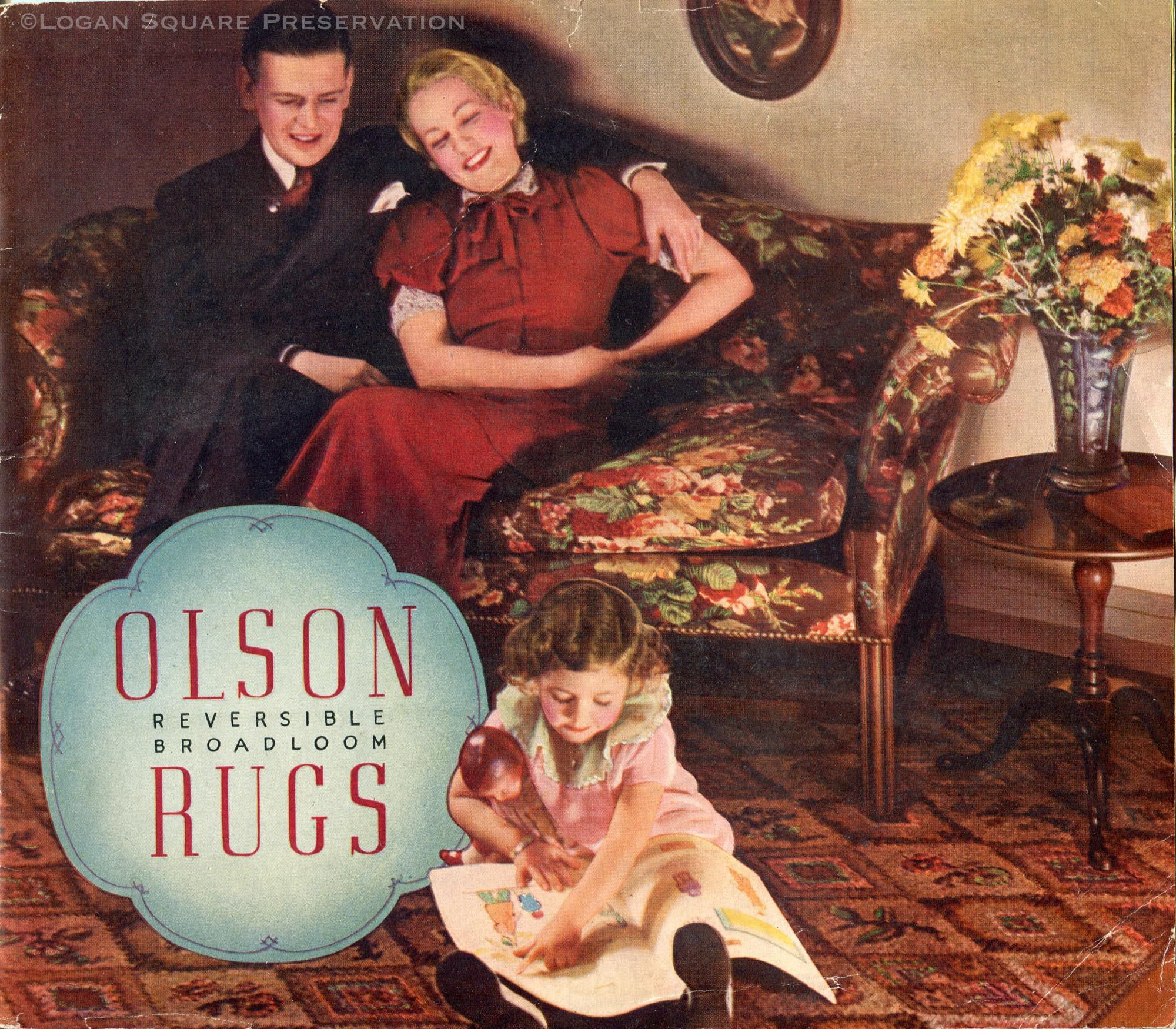 60-pg staple-bound catalog booklet with color illustrations of Olson rugs. Includes photos and description of rug factory and color illustration of factory on back. Order form, letter and order envelope attached to interior pages.Publication Details
