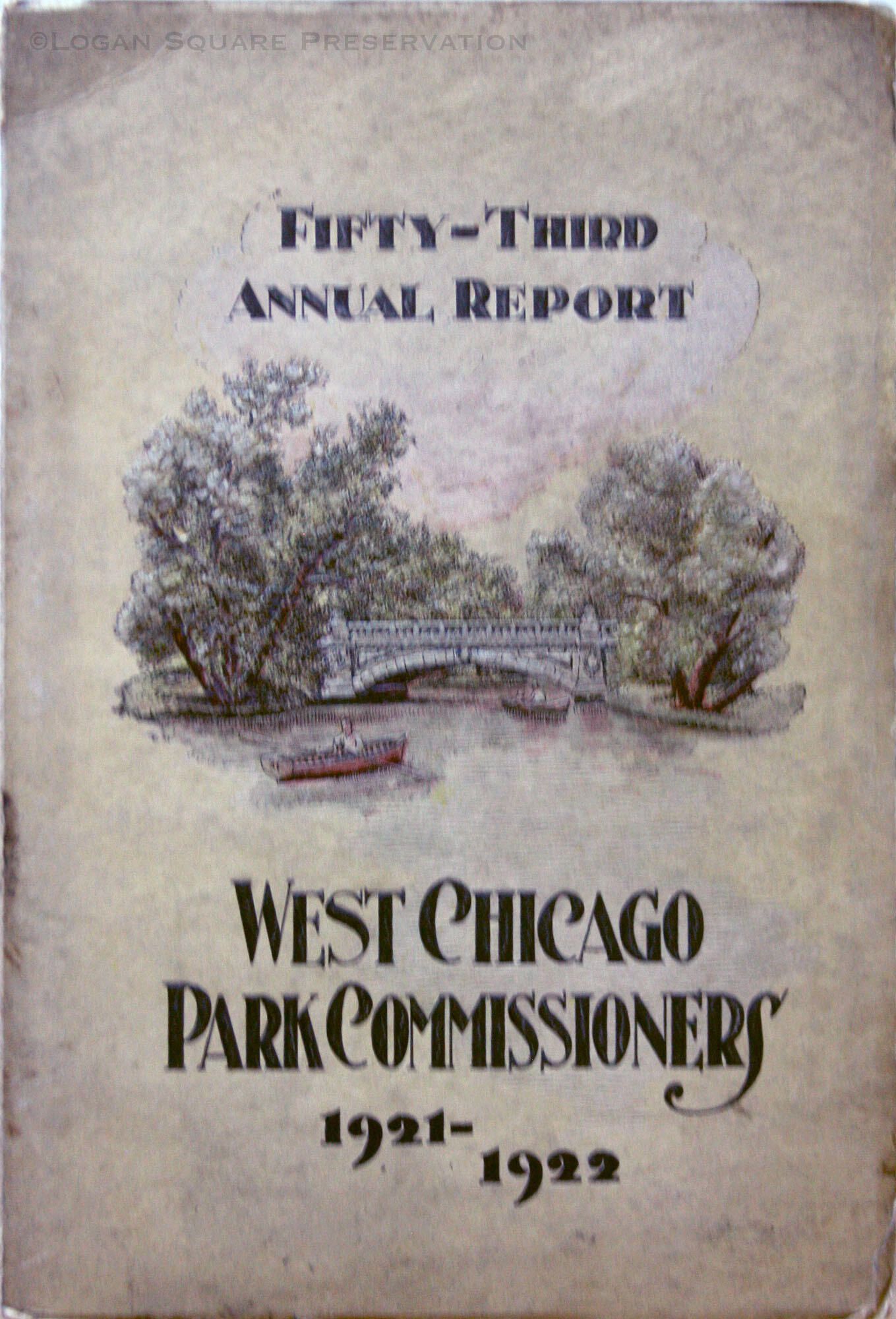 136-pg softcover-bound report of West Chicago Parks Commission for year ending Feb 28, 1922