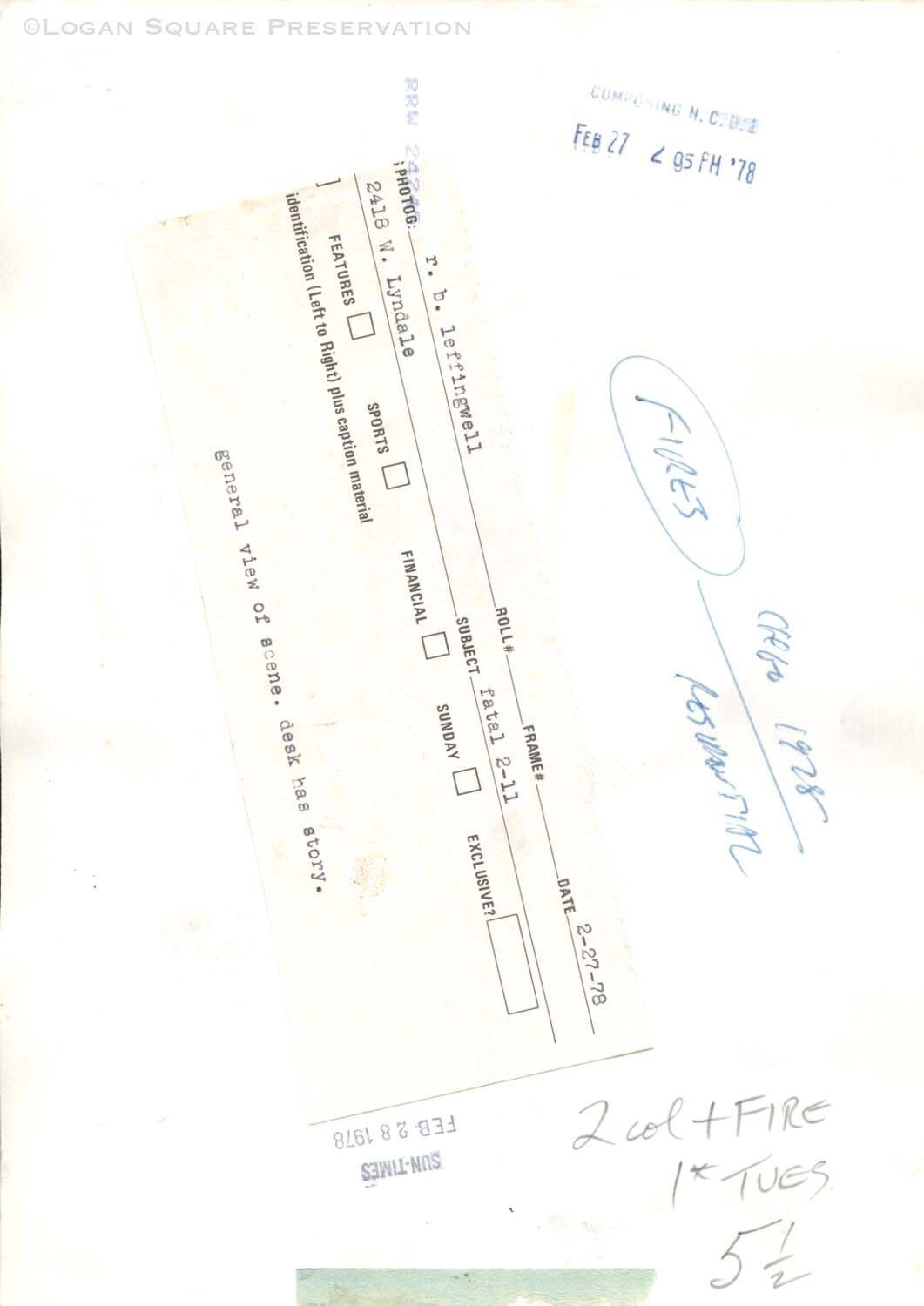 Fire at 2418 W. LyndaleEntry/Object ID