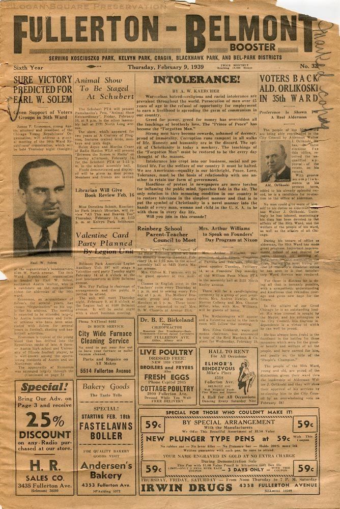 Fullerton-Belmont Booster - February 9, 1939Entry/Object ID