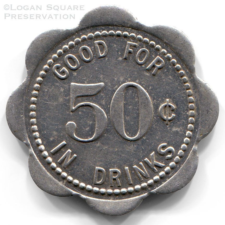 Flower-shaped aluminum tavern token good for 50¢ credit at Gayety Village night club, circa 1950sCollection