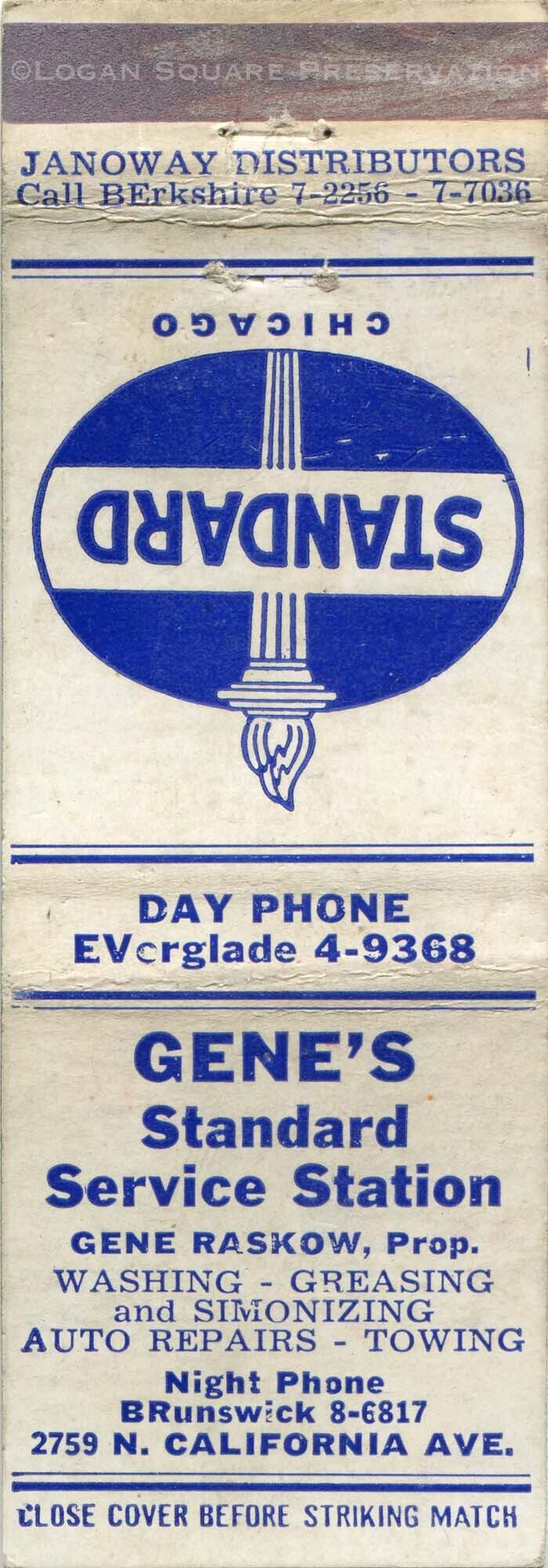 1.5" matchbook printed in blue ink on cream paper with Standard Oil logo on back, circa 1950sPublication Details