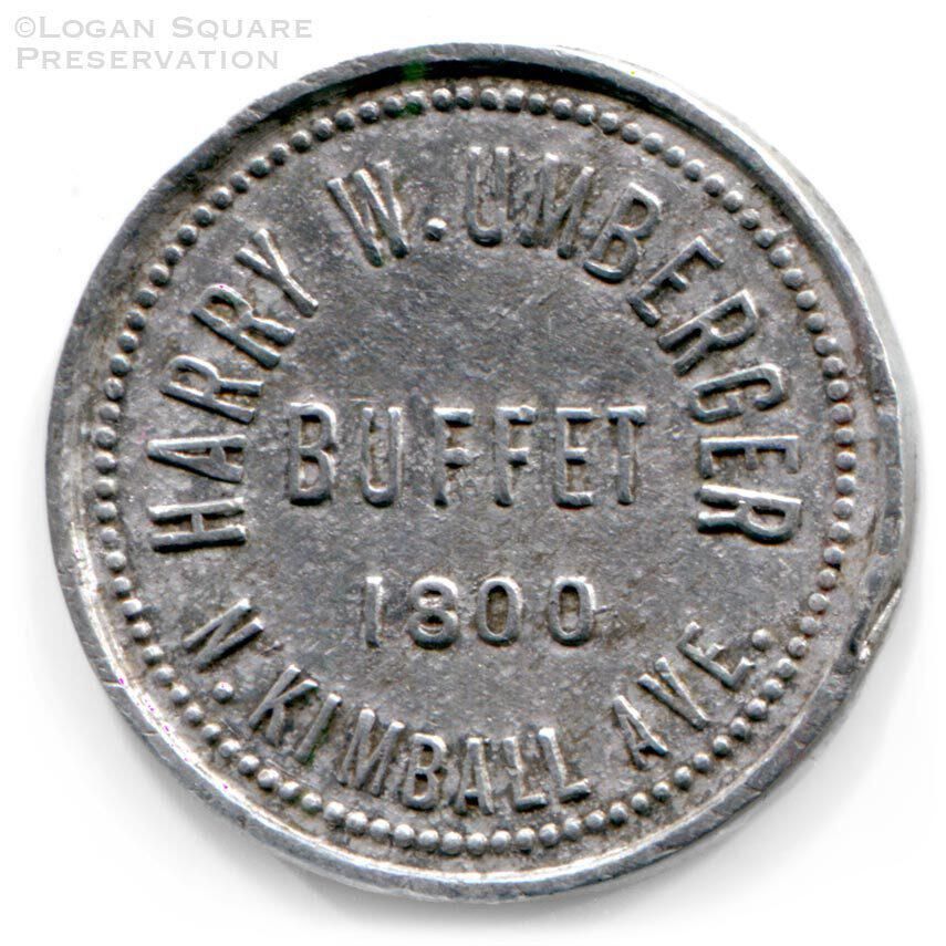 1" tin tavern token good for 5¢ credit at Harry W. Umberger saloon, circa 1910s. Saloon building demolished for construction of elevated Bloomingdale Line tracks 1913-1915Relationships