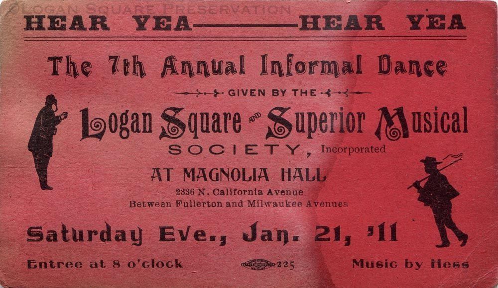 Invitation card to Jan 21, 1911 dance at Magnolia Hall given by the Logan Square and Superior Musical Society with music by Hess (likely Henry Hess). Lyrics to "Good-by Betty Brown", "I'll Lend You Everything I've Got Except My Wife" and "Play Me That Barber Shop Chord" on back.Publication Details