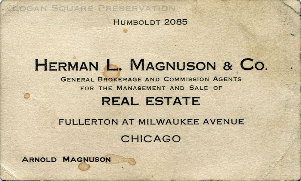 Business card for Arnold Magnuson of Herman L. Magnuson & Co., general brokerage and commission agents for the management and sale of real estate, circa 1920sCollection