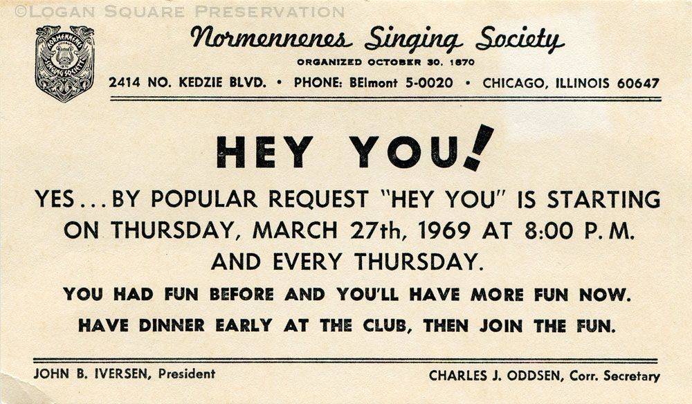 Promotion card for opening of weekly musical show by Normennenes choir starting March 27, 1969Collection