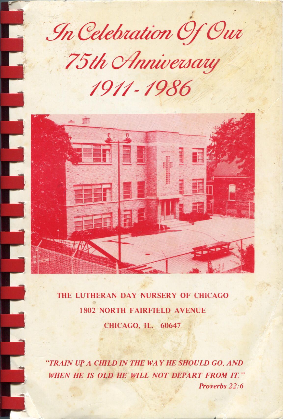 198-pg comb-bound cookbook with photograph of Lutheran Day Nursery on cover, 1986Book Details