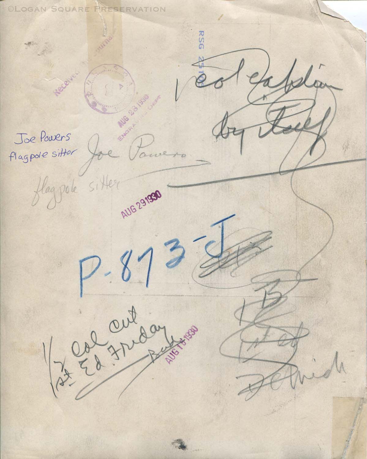 Studio publicity portrait of stuntman Joe Powers, who sat on bosun's chair on flagpole atop 2800 N. Milwaukee Ave for 16 days in August 1930Photograph Details