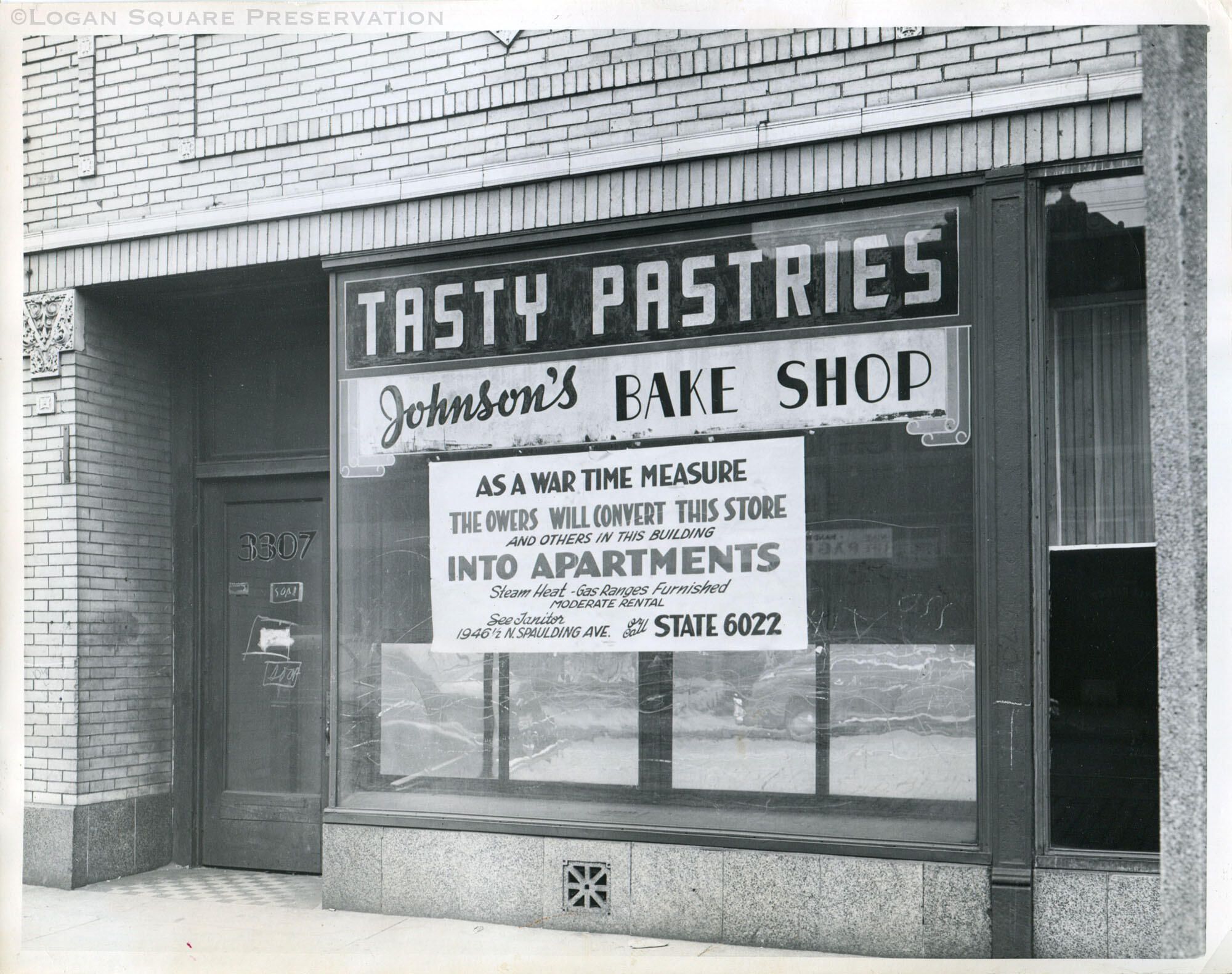 News photo of wartime temporary housing in storefront at 3307 W Armitage, June 1943Photograph Details