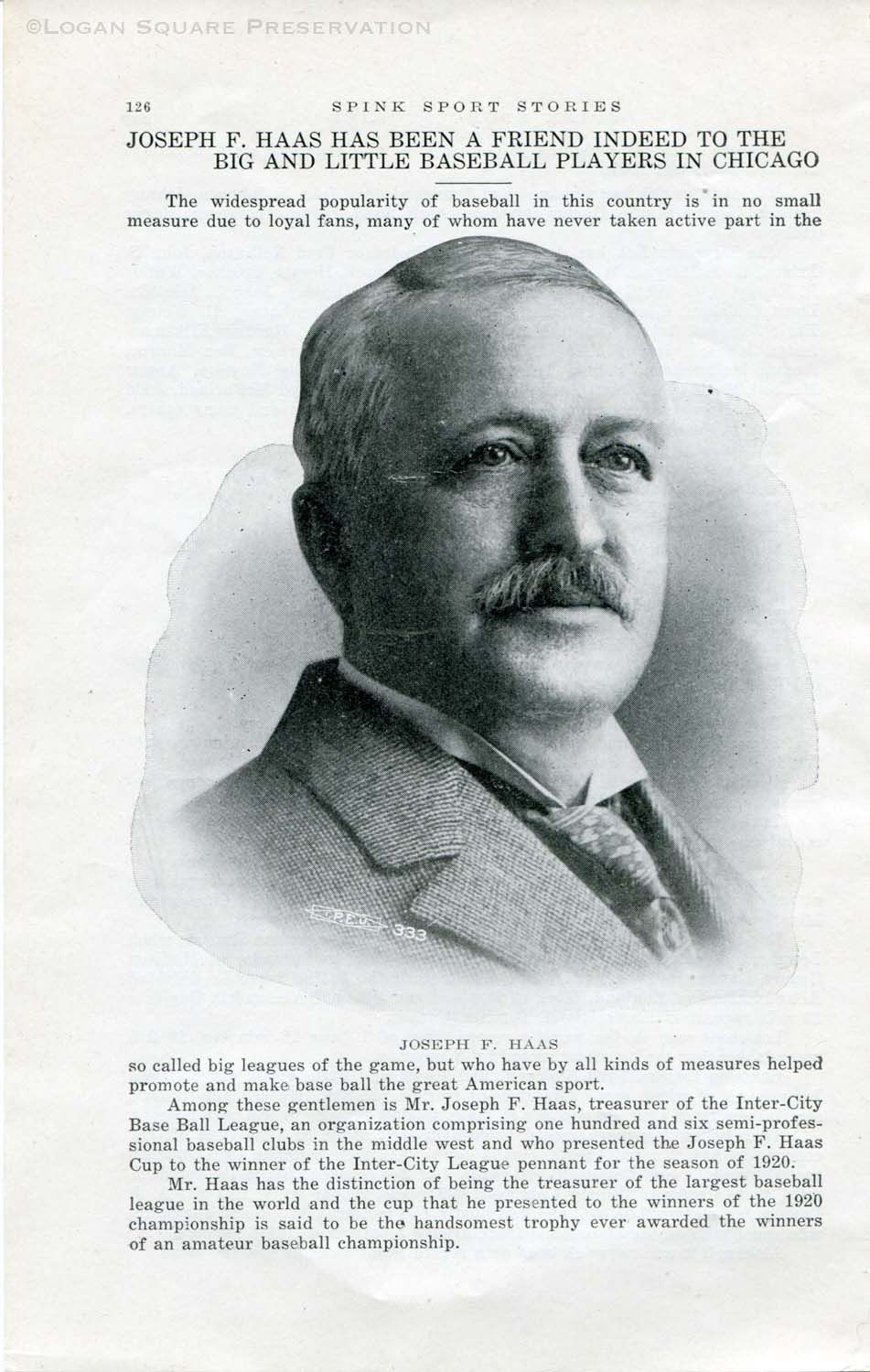 Joseph F. Haas has been a friend indeed to the big and little baseball players in ChicagoTags