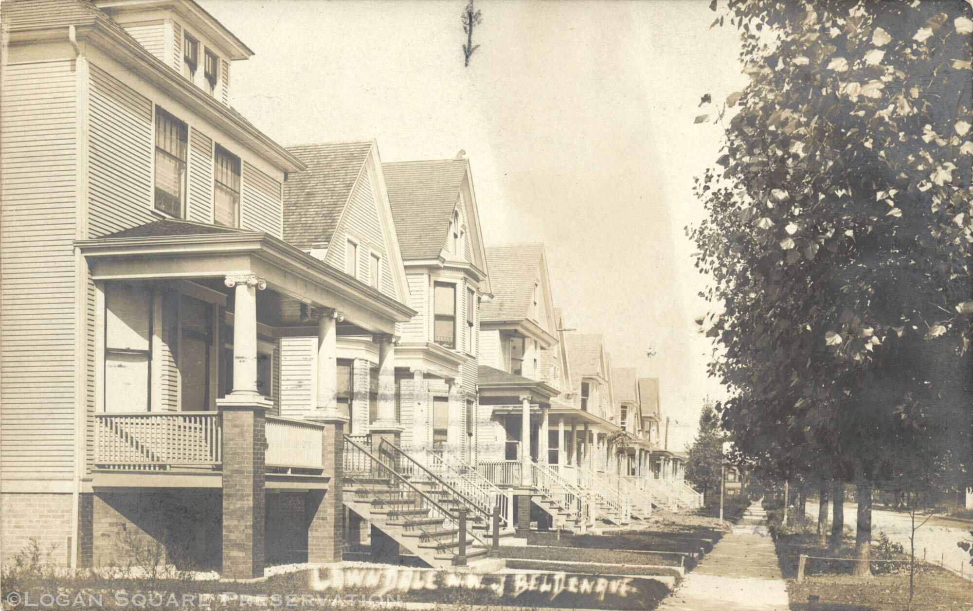 Real-photo postcard view looking north at frame houses on 2300 block of Lawndale, circa 1909Subject