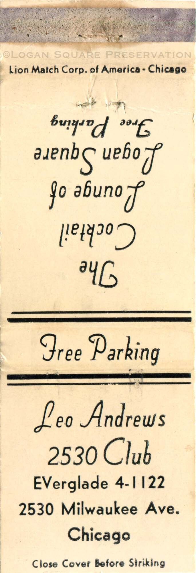 Leo Andrews 2530 Club matchbookEntry/Object ID