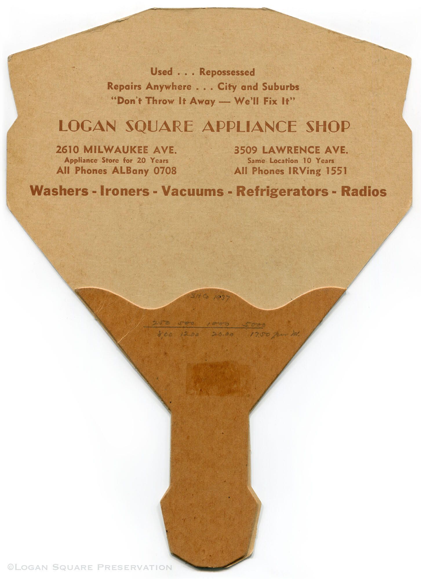 Logan Square Appliance Shop promotional fanEntry/Object ID