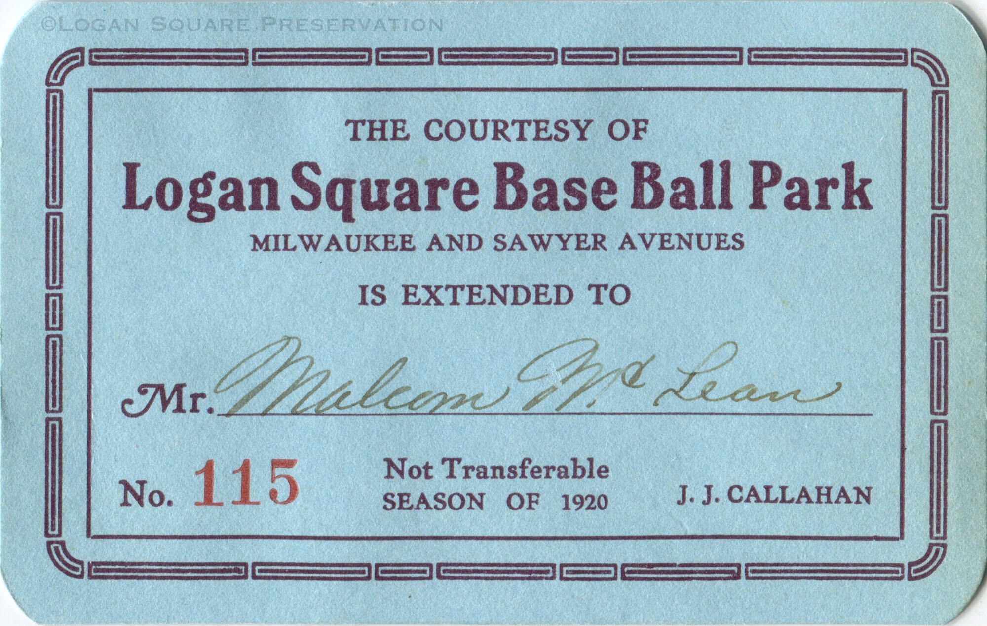 Card No. 115 season pass issued to Malcom McLean for 1920 season at Logan Square Base Ball ParkPublication Details