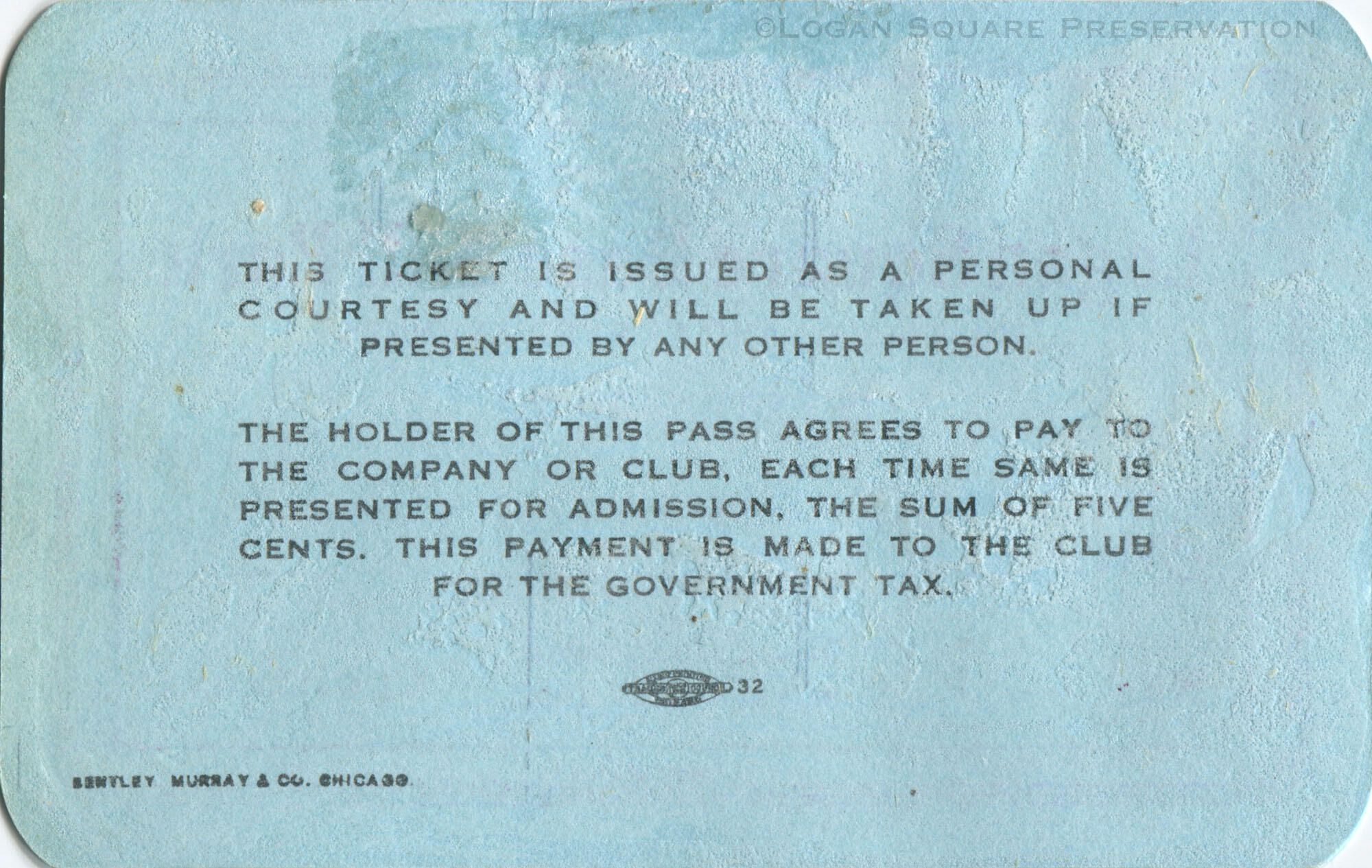 Logan Square Base Ball Park 1920 Season Pass CardEntry/Object ID