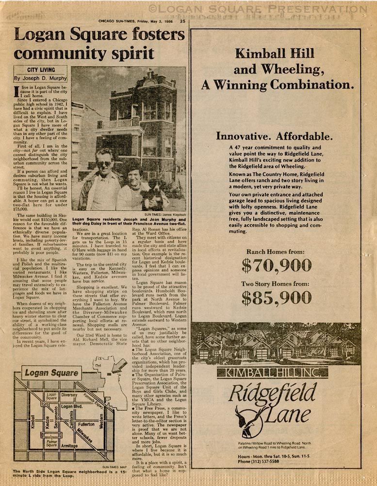 Newspaper clipping of article about owning two-flat in Logan Square, May 1986Collection