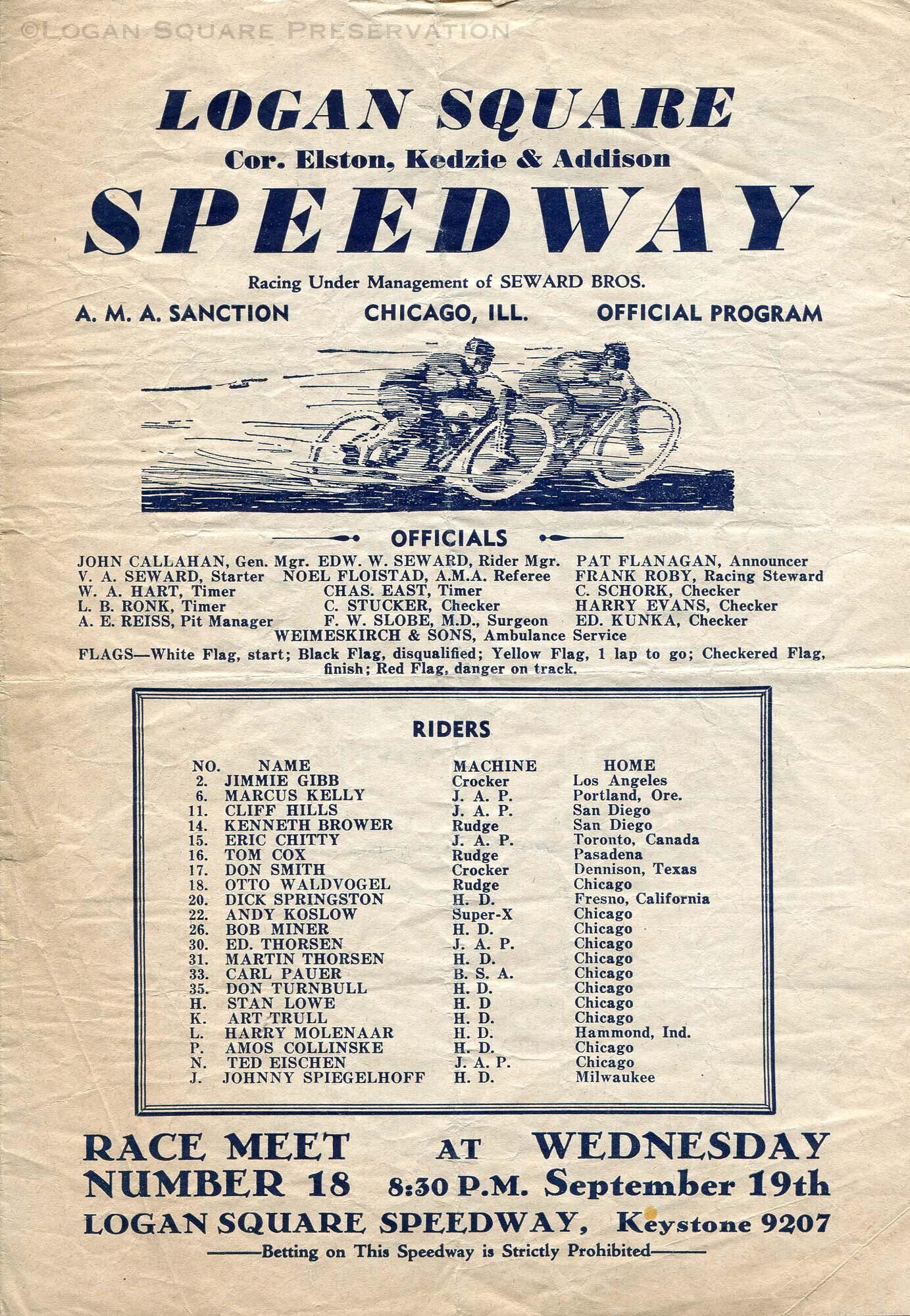 Logan Square Speedway program Sept 19, 1934Entry/Object ID