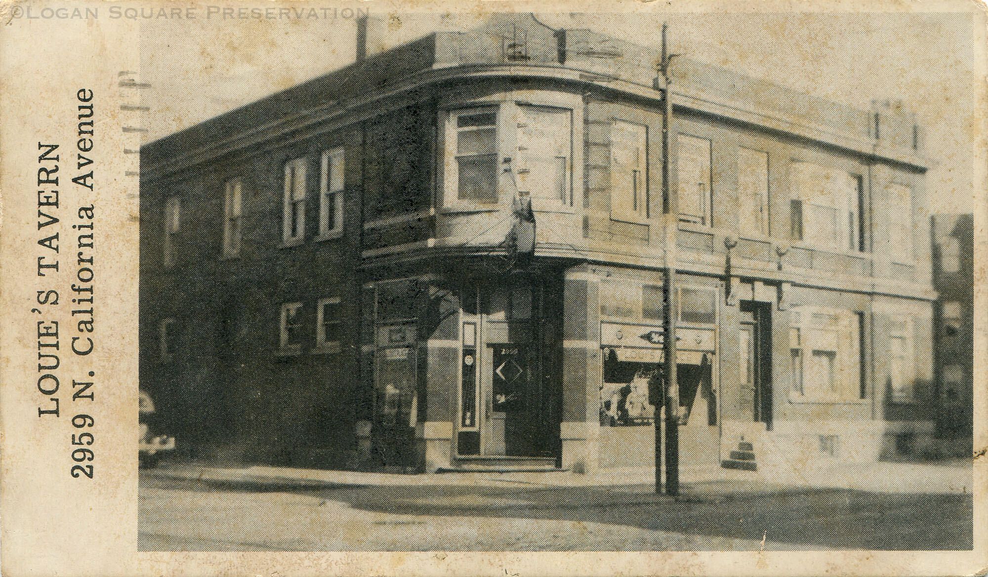 Printed postcard view looking southeast at 2-story tavern and flats above at corner of Wellington & California Aves, circa 1942Subject Person/Organization