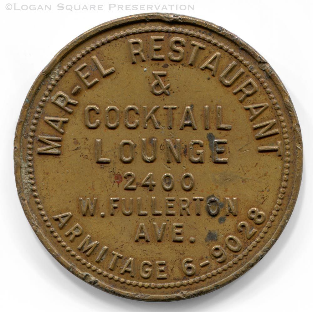 1.5" metal tavern token good for $1.00 in drinks at Mar-El Restaurant, circa 1940s-1950sRelationships