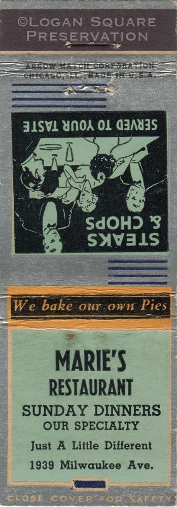 Marie's Restaurant MatchbookEntry/Object ID