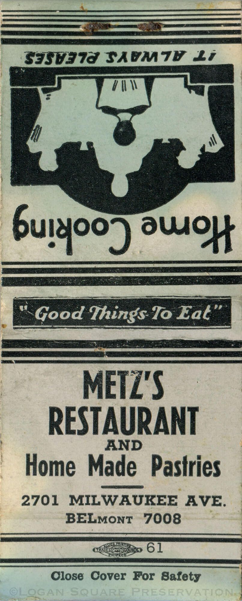 Metz's Restaurant matchbookEntry/Object ID