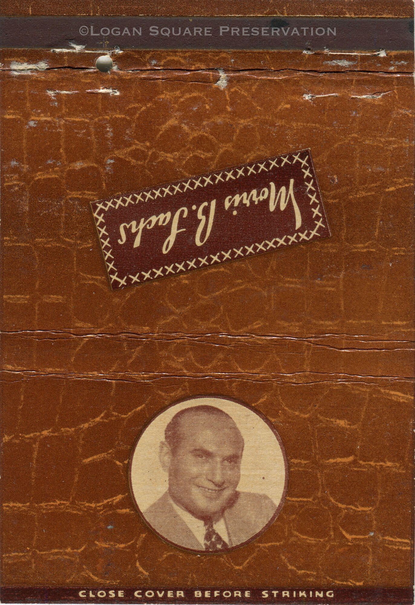 3" matchbook in brown ink with embossed texture with photo portrait of Morris B. Sachs, circa 1940sRelationships