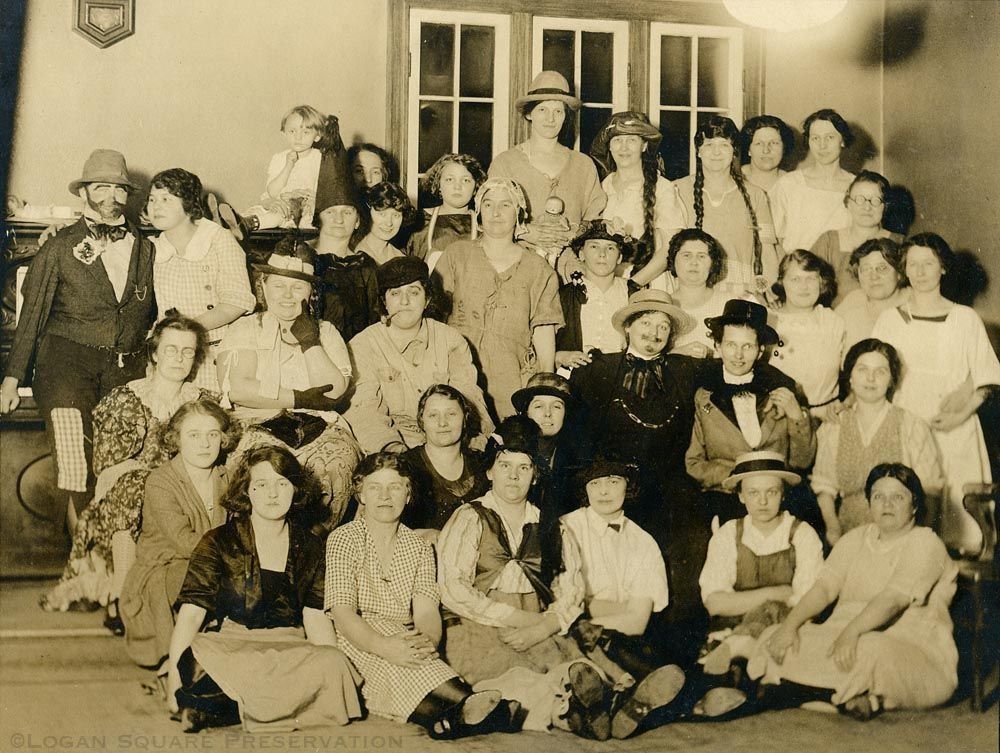 Group photo of members of Mozart Club, alumni of Mozart Elementary School, possibly after a theatrical performance, 1922Photograph Details