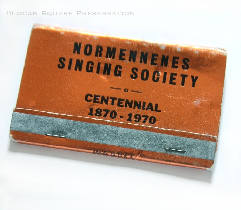 3-inch 40-strike matchbook printed in black on metallic orange for Normennenes Singing Society's centennial year, 1970Collection