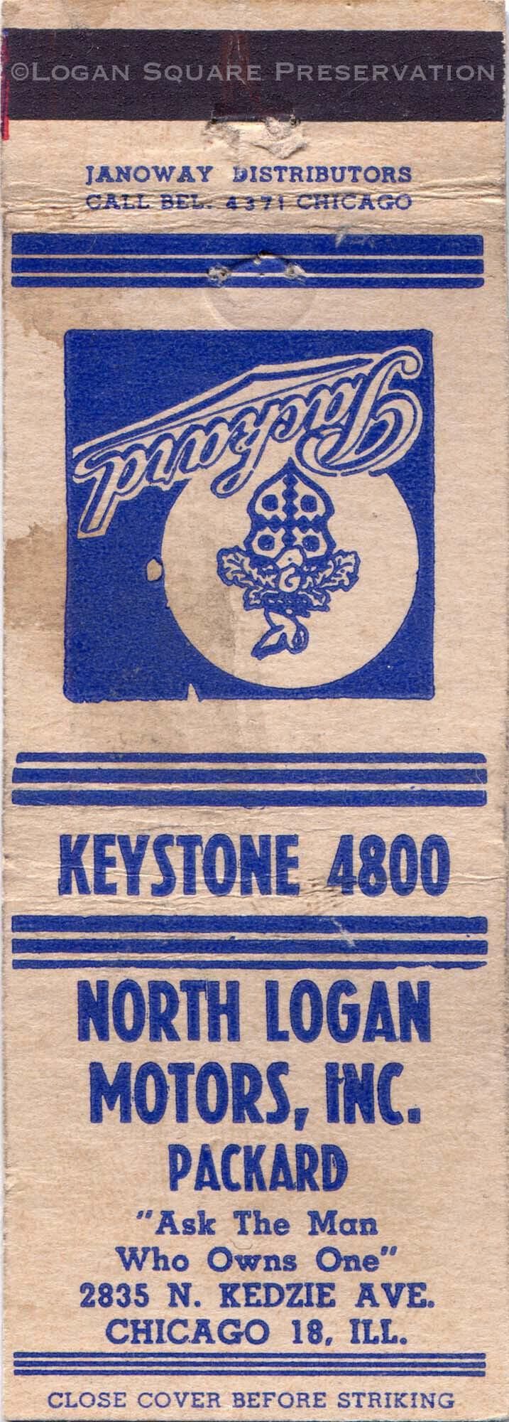 1.5" matchbook printed in blue ink on cream paper with Packard logo on back, circa 1950sPublication Details