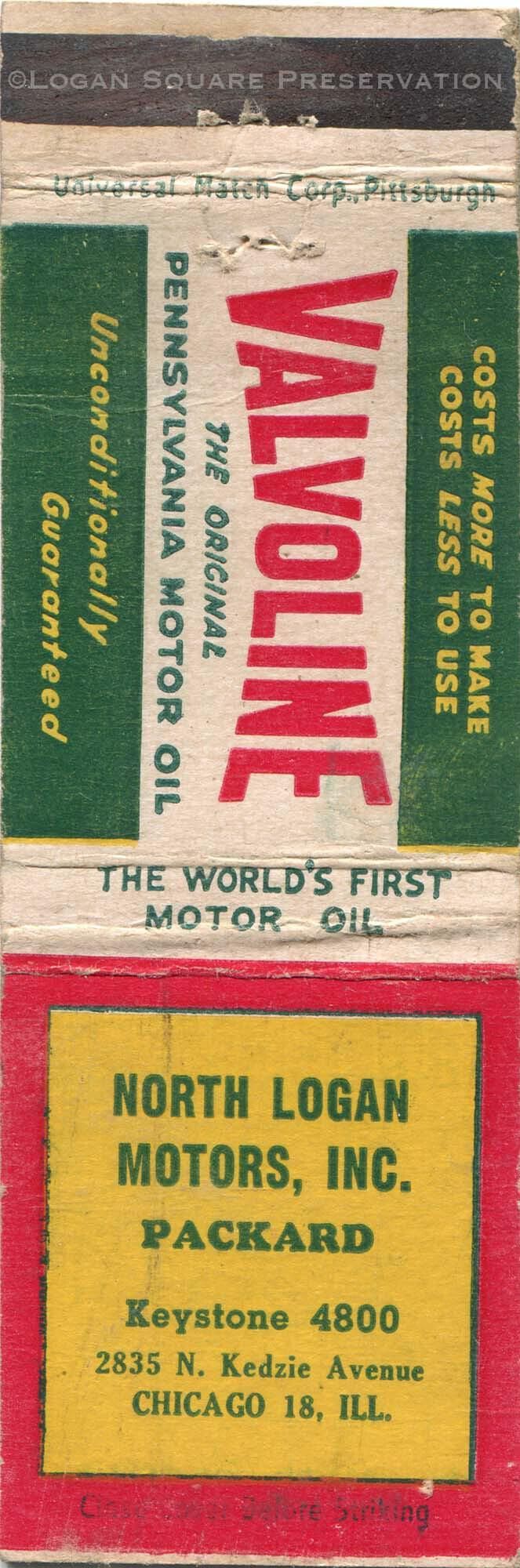 1.5" matchbook printed in green, yellow and red ink on cream paper with advertisement for Valvoline Oil on back, circa 1950sPublication Details