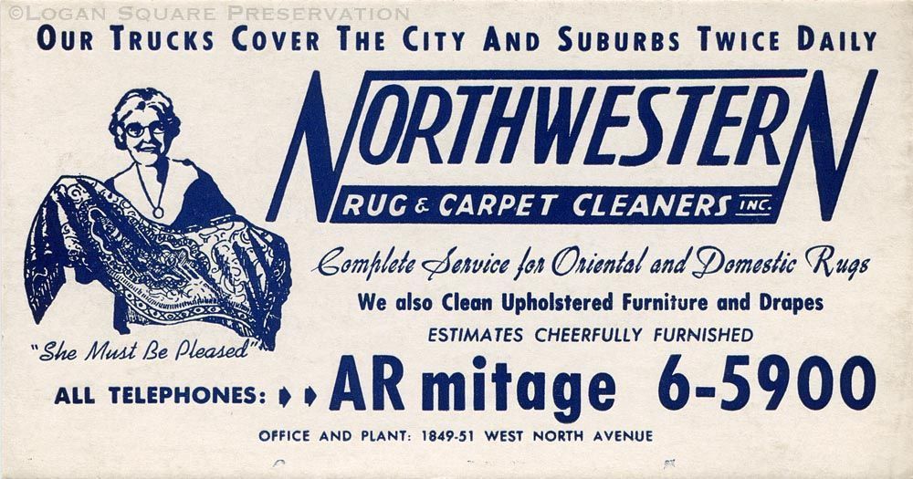 Promotional ink blotter card with advertisement for Northwestern Rug & Carpet Cleaners featuring illustration of smiling woman holding rug "She Must Be Pleased", circa 1950sRelationships