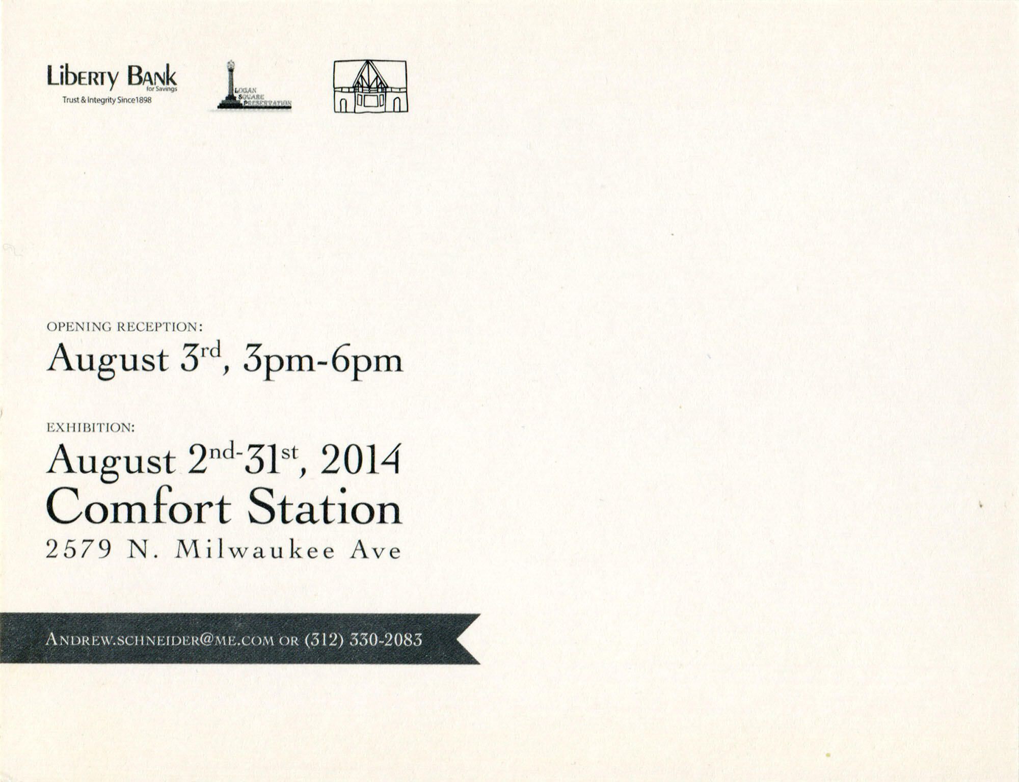 Promotional postcard for exhibit of historic photographs at Comfort Station organized by Andrew Schneider and David Keel, August 2014Subject Place