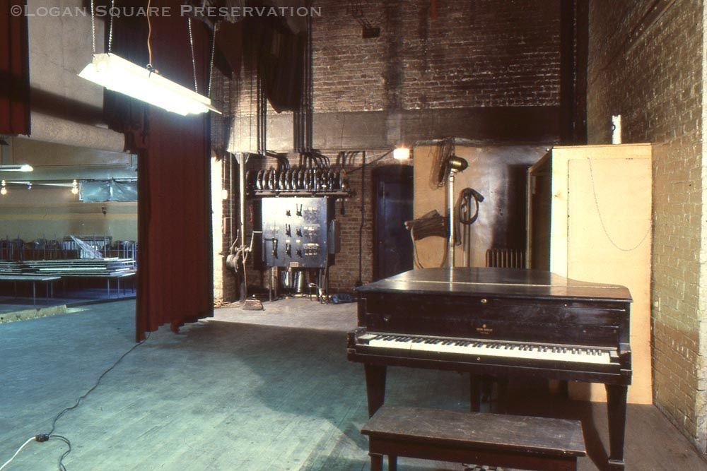 35mm color slide transparency view of piano and electrical panel in rear of stage during renovation of former masonic temple by Armitage Baptist members, 1983Photograph Details