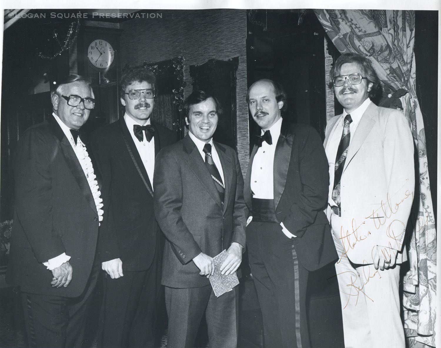 Group portrait of Cook County Attorney Richard M. Daley with Herremiddag dinner guests Chris Johansen, Rusty & Ricky Elmer and Rob Alsaker, identified on back as Dec 1981Photograph Details