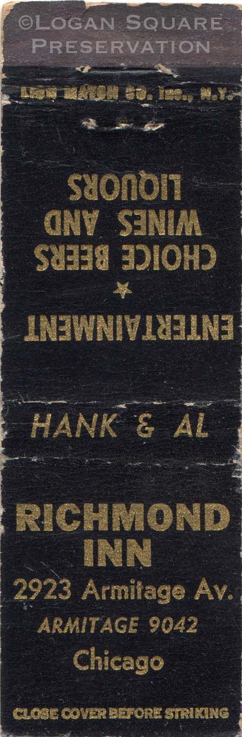 1-1/8" wide midget-sized matchbook cover printed in gold on black ink for Richmond Inn tavern, circa late 1930sPublication Details