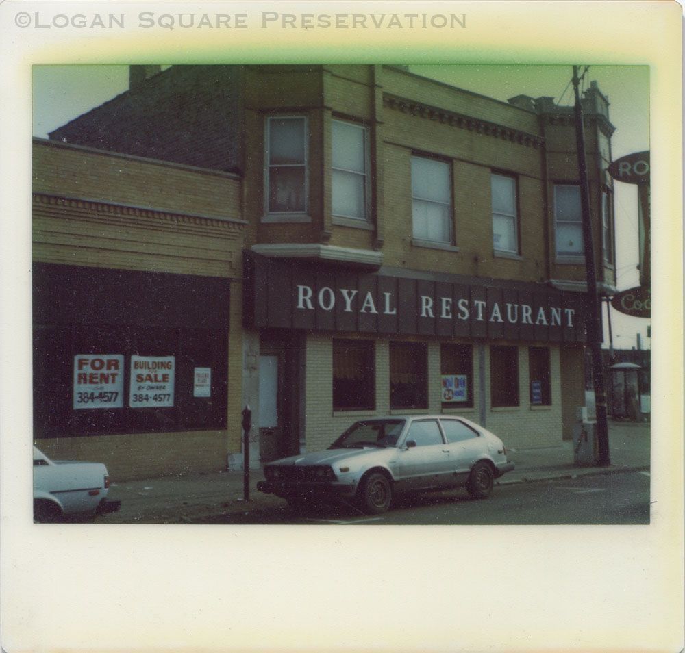 Polaroid instant photo looking southeast at Milwaukee Ave facade of Royal Restaurant, circa 1970s-1980sPhotograph Details