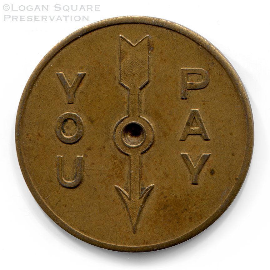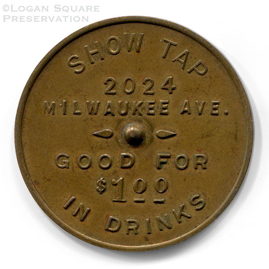 Metal spinner tavern token good for $1.00 in credit at Show Tap tavern with raised center and arrow on reverse for spinning to decide who will pay for a round of drinks, circa 1960sCollection