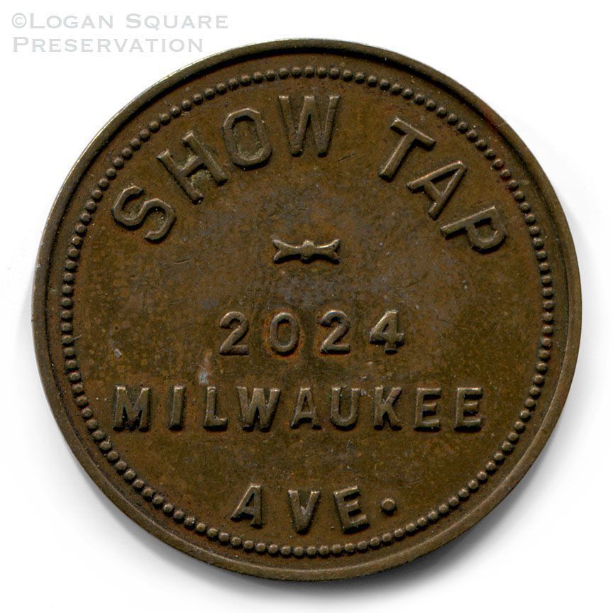 Metal tavern token good for $1.00 in credit at Show Tap tavern, circa 1960sCollection
