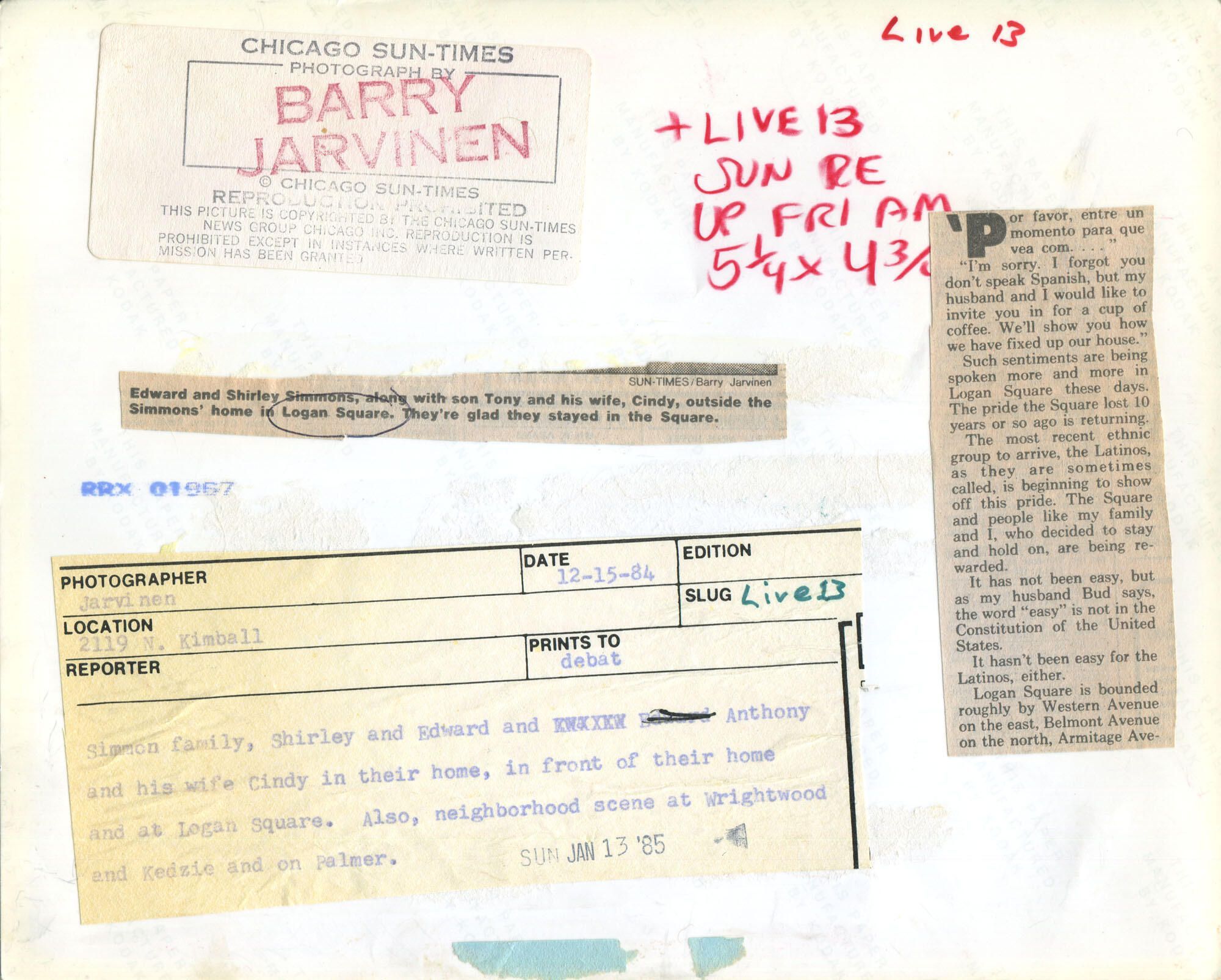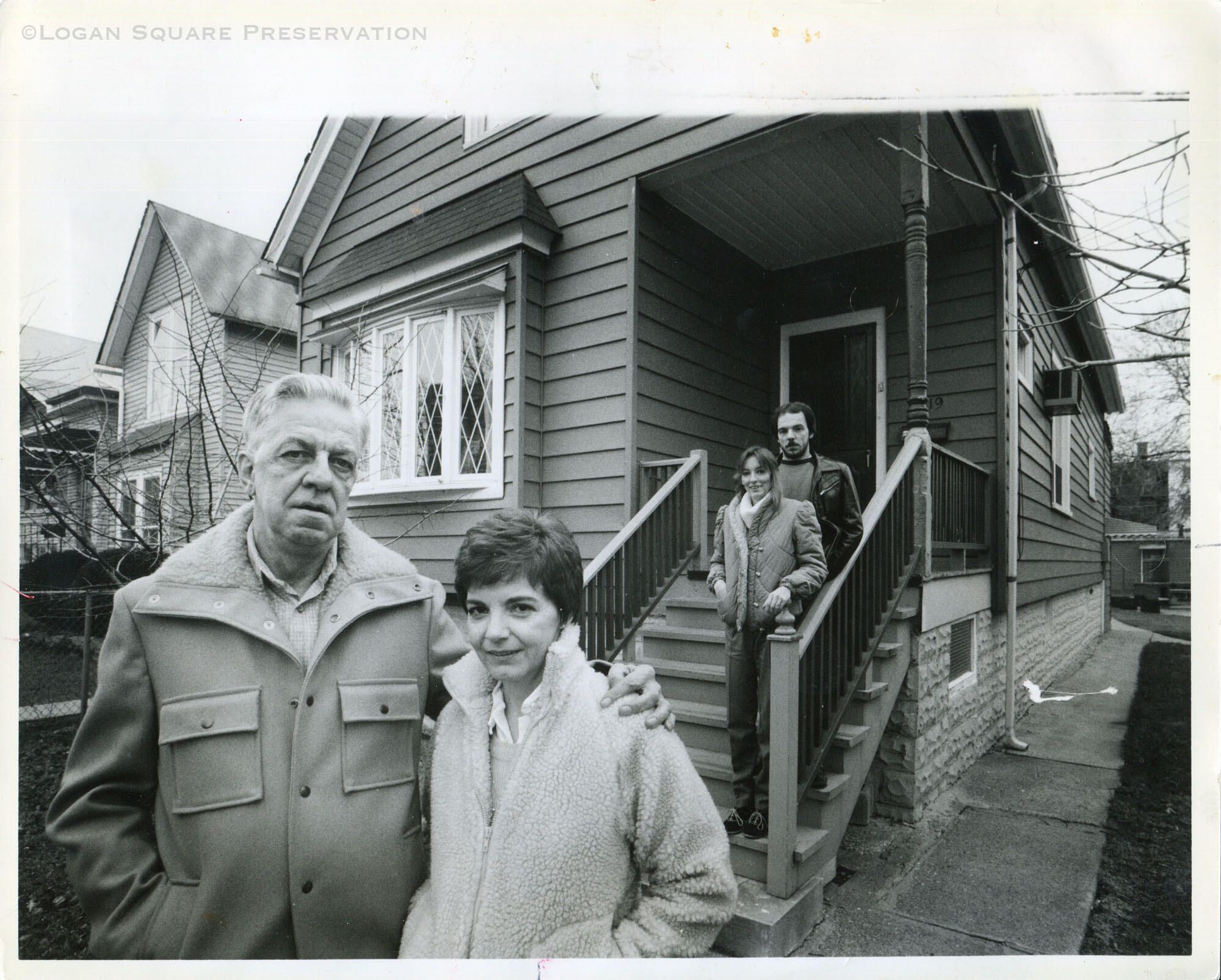 News photo of Edward and Shirley Simmons outside their home, December 1984Photograph Details