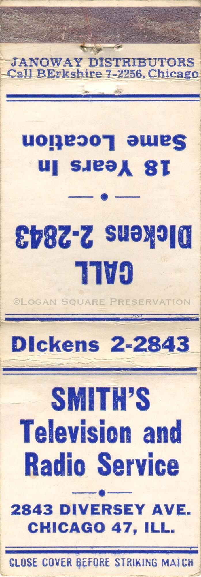 Smith's Television and Radio Service matchbookEntry/Object ID