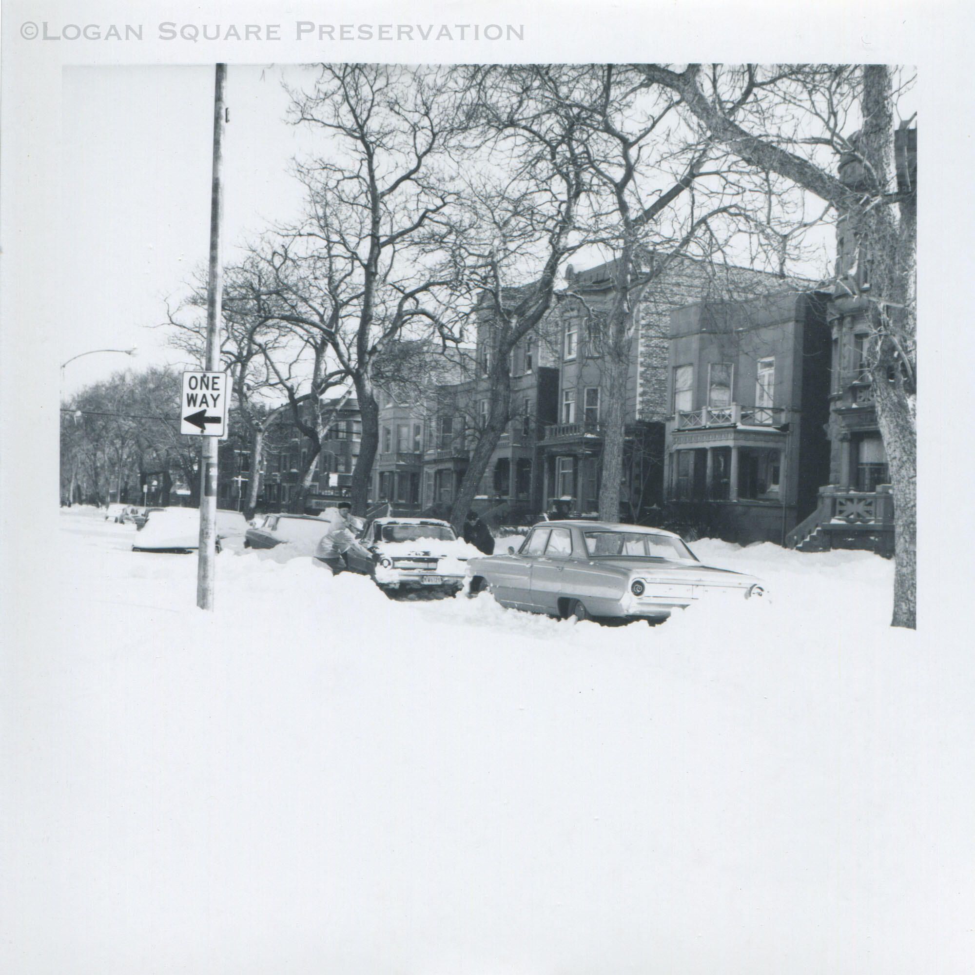 Gerald Slawin photo of snowed-in cars on 2800 block of W. Logan Blvd after Jan 1967 blizzardPhotograph Details